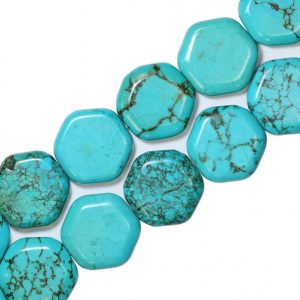 • 38x36mm High Quality Smooth Blue/Green Hexagon Turquoise Bead Stone Strand (15 Inches)
