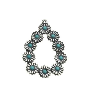 • 49×33.5mm Howlite Turquoise with Lead Free Pewter Flower Charm(B82475)