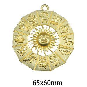 • 65x60mm Lead Free Pewter Matte Gold Twelve Constellations Pendant (B76304)