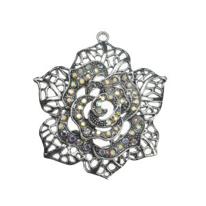 • 67x58mm Rhinestone with Lead Free Pewter Flower Charm(A16851)