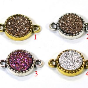 • Bead Synthetic Round Druzy Pewter Bezel Connector (15mm)