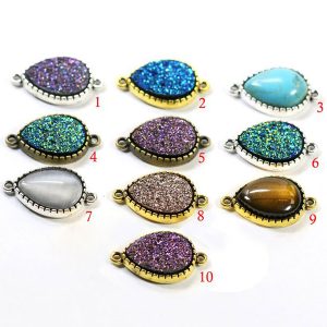 • Bead Synthetic Teardrop Druzy Pewter Bezel Connector (21mmx16mm)